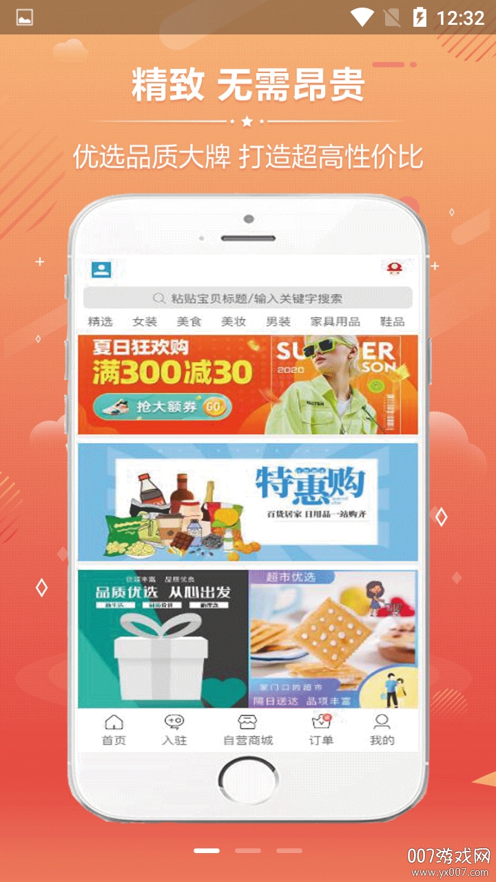首页功能设计简洁明了,顶部设有智能搜索栏,中间区域展示今日爆款和限时秒杀,底部导航栏包含五大核心模块。用户首次登录即可获得新人专属红包,首页还设有滚动公告栏实时更新最新活动信息。