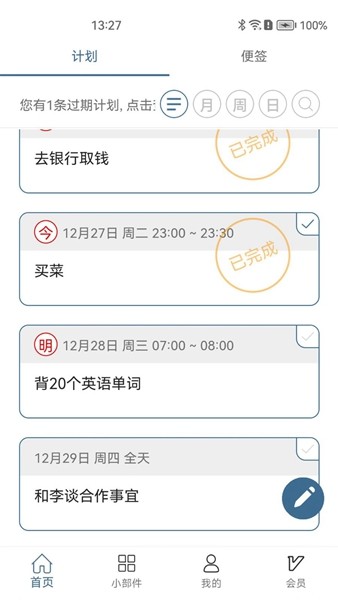 总的来说,计划表是一款功能全面、操作简便的时间管理工具,无论是学生、上班族还是家庭主妇,都能从中获得高效便捷的日程管理体验。它不仅能帮助您合理安排时间,更能提升生活品质和工作效率,是现代人不可或缺的智能生活助手。