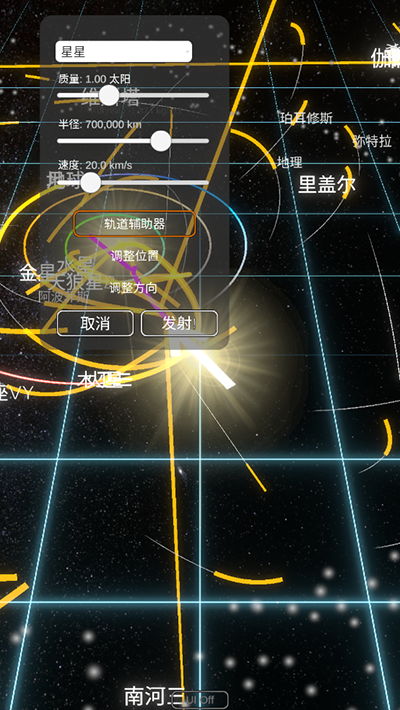 你可以自己创建一个星系,比如火星、水星、木星、土星等,构建一个完美的天体系统,实现公转和自转。系统提供详细的物理参数设置面板,可精确调整每个天体的质量、轨道倾角甚至反照率,创造出的星系会实时展现符合万有引力定律的动态效果。这种深度定制功能让用户能模拟各种宇宙奇观,比如制造行星碰撞或构建双星系统。