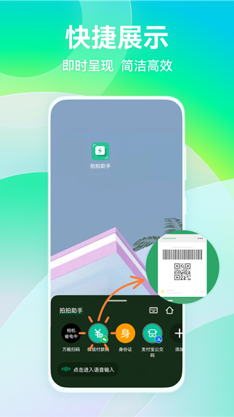 拍拍助手智能扫码是交互未来科技精心打造的一款高效扫码工具,专为现代快节奏生活设计。它将公交地铁码、健康宝、付款码等高频应用整合在一个界面,只需一键即可快速调出,彻底告别繁琐的APP切换。软件采用先进的智能识别技术,能精准读取各类二维码信息,同时支持个性化设置,让每位用户都能定制专属的扫码体验。无论是日常出行还是移动支付,拍拍助手都能为您提供流畅、便捷的服务,成为您生活中不可或缺的智能助手。