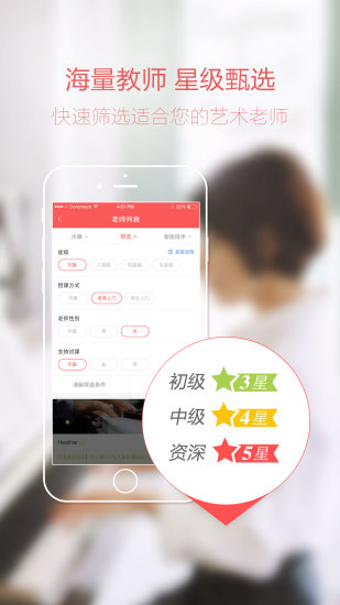 《多艺》作为专业的艺术教育O2O平台,不仅为学生提供优质服务,也为艺术老师打造了展示自我的舞台。平台拥有严格的星级评定审核体系,帮助老师准确定位,提升教学水平,增加收入来源。老师可以通过多个终端管理课程表,高效安排教学行程。课酬结算系统安全便捷,保障老师的劳动所得。《多艺》已成为艺术老师招生教学的必备工具,是连接艺术教育供需双方的最佳桥梁。