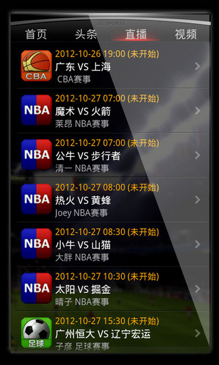 观看3G直播员为您送上激情的足球、篮球赛事文图直播,支持实时互动评论功能,让您与其他球迷一起分享观赛乐趣。