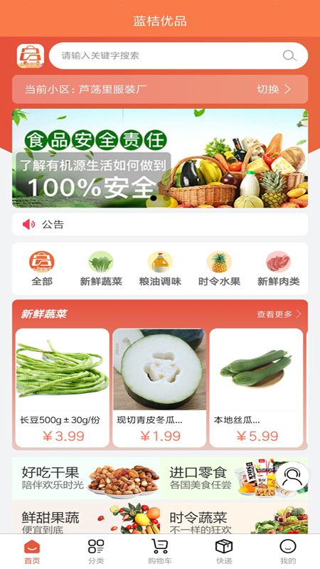 蓝桔优品是一款专注于生鲜食品和生活用品的综合性电商平台,致力于为用户提供新鲜、平价、安全的购物体验。平台采用"基地直采+自营配送"模式,从源头把控商品品质,所有商品都经过专业质检团队的严格筛选。配送网络覆盖全国主要城市,通过智能化的冷链物流系统,确保生鲜产品从田间地头到用户餐桌的新鲜度。平台商品种类丰富,包括蔬菜水果、肉禽蛋品、海鲜水产、休闲食品、酒水饮料等,满足用户一站式购物需求。