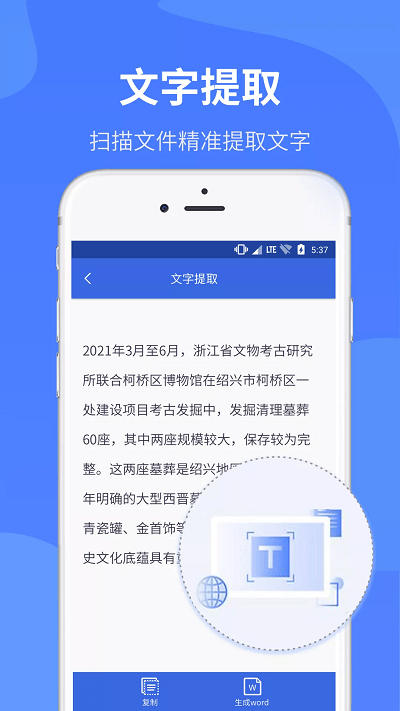 【文字提取】通过高精度OCR技术,软件可快速识别扫描文档中的文字内容,支持复制和编辑,并免费生成Word文件,大幅提升工作效率。