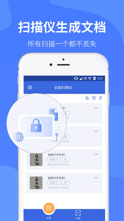 【证件扫描】采用智能识别技术,软件可自动校正证件图像,生成无水印、无logo的电子扫描件,并支持直接保存至手机,方便随时调用。