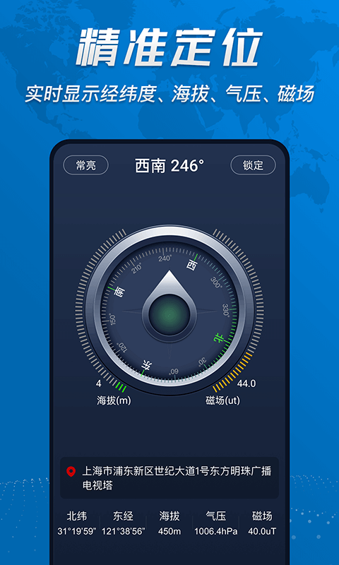 指南针:不仅支持基本方向指示,还能实时显示海拔、气压、经纬度等专业数据,让您全面掌握环境信息。