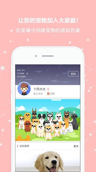 邂逅您身边的狗友,一起线下交流,线上交互,系统会智能推荐附近同品种宠主;
