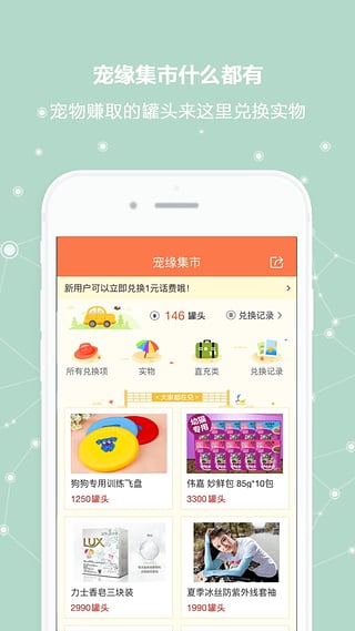 宠缘集市:持有罐头能够在宠物集市免费兑换各种实体商品,每周上新限量爆品;
