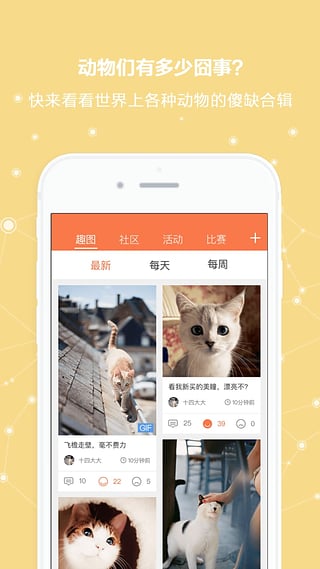 社区内容丰富多彩,了解宠友趣事,观看囧缺合辑,每日更新上百条UGC内容;