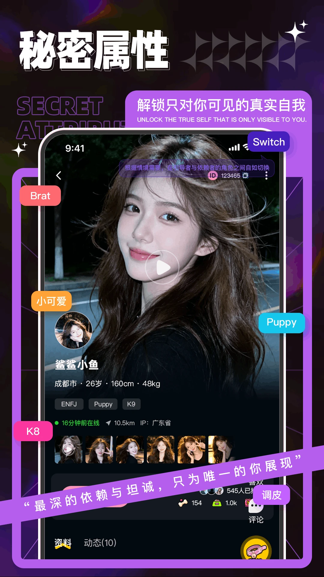 这是一款独特亲密羁绊和甜蜜黏人邂逅的契约型情感连接空间。在这里,每一次呼唤都有回响,每一份真诚的依赖都被温柔接纳。当你想寻找专属于你的那份热烈、黏人又真诚的回应时——