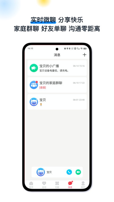 实时微聊:摇一摇加好友,与小伙伴一起运动,实现零距离沟通。支持语音、文字、表情等多种交流方式,让孩子在安全环境下建立社交圈。