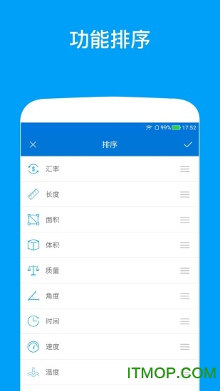 支持功能排序。用户可以根据使用频率自定义功能排序,将最常用的换算类型置顶。软件还会智能学习用户习惯,自动调整功能优先级。
