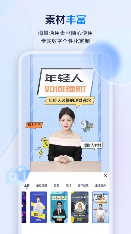 个性化定制:支持用户自定义数字人的外貌特征,包括发型、服装、背景等,满足不同场景下的使用需求。平台提供丰富的造型库和风格模板,让用户可以根据个人喜好或品牌调性,打造独一无二的数字形象。