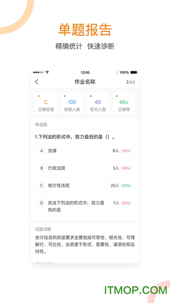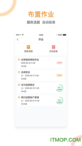 题库选题:内置海量专业题库资源,教师可按知识点、题型、难度等多维度筛选题目,快速组建个性化作业,满足分层教学需求。