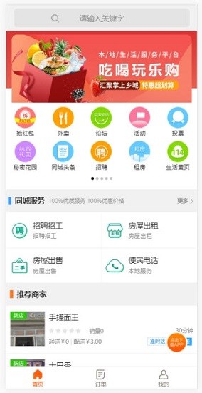 以便民菜市场、本地商城、配送到家为民生服务,以跑腿、美食外送等为便民特色服务,与本地商家建立长期合作关系。