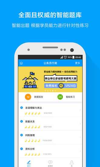 新增直播课:在原有公务员行测题库的基础上,粉笔公考特别新增了名师直播课程。这些直播课由业内知名讲师主讲,内容涵盖考试重点难点解析、答题技巧传授和最新考情分析,帮助用户在备考路上少走弯路。
