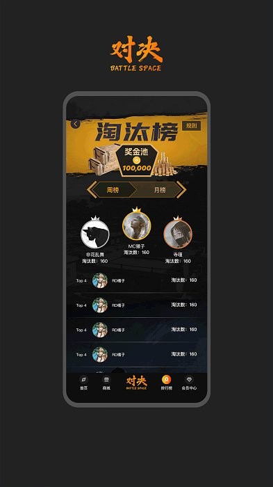 实时更新的排行榜功能让用户能够随时掌握电竞赛事的最新动态。平台提供周榜和月榜两种排名方式,详细展示选手的淘汰排名信息,激励玩家不断进步。