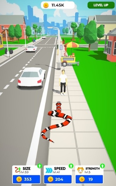 游手好闲的蛇在不同风景下去冒险,还可以不断吞噬城市各种物品。除了常规食物外,还能吞噬特殊道具获得临时能力加成,甚至可以将整辆汽车吞入腹中。