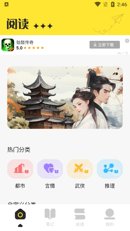 打开猴子阅读器app后,首页会展示多种书籍分类,包括小说、文学、历史、科技等,方便用户快速找到感兴趣的书籍。用户可以根据自己的喜好创建专属分类,并将喜欢的书籍添加到收藏夹中,随时随地进行阅读。软件还提供了成语板块,用户可以在这里查阅成语的详细解释和背景故事,提升自己的语言能力。此外,猴子阅读器app支持多种阅读模式,用户可以根据环境光线和个人习惯调整字体大小、背景颜色等设置,享受舒适的阅读体验。