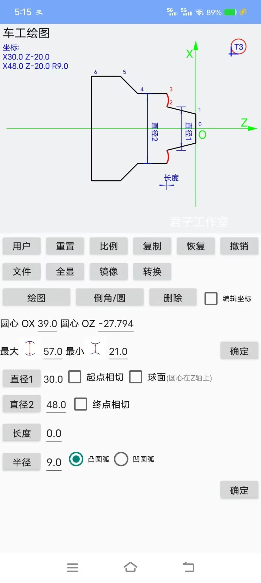 车工绘图是专门为数控车工开放的软件,主要用于车床加工零件的图形绘制,计算锥度坐标、圆弧交点坐标、圆弧切点坐标和倒角、倒圆计算。