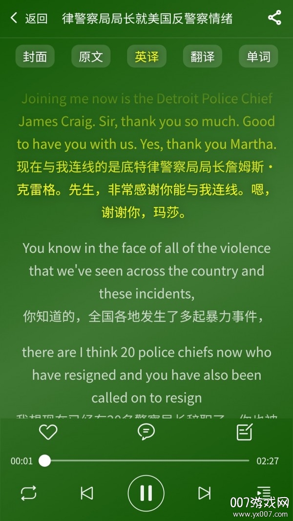 海量资源:平台收录了VOA、BBC、美剧片段、名人演讲等各类英语学习素材,资源类型丰富多样;离线使用:支持批量下载功能,用户可将课程内容保存至本地,无网络时也能学习;精听泛听:提供中英双语对照功能,支持听写练习,帮助提升听力水平;口语跟读:采用智能评分系统,逐句纠正发音,提高口语能力;音标练习:通过音标对比功能,帮助用户准确掌握每个音标的发音要领。