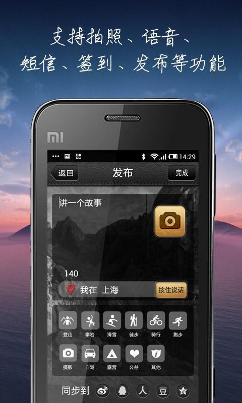 故事、活动、足迹等兼有的"野外"内容模块,让您轻松探索各类户外资讯和精彩游记。内置高精度GPS系统,配合详细地图标注功能,确保在任何环境下都能准确定位队友位置。您可以建立专属旅行圈子,记录旅途中的每个精彩瞬间,还能通过拍照、签到、发布等功能与好友实时互动。旅行活动板块帮助您快速找到志同道合的伙伴,而APP内置的去野商场则提供各类专业旅行装备,让您随时随地都能为下一次冒险做好准备。