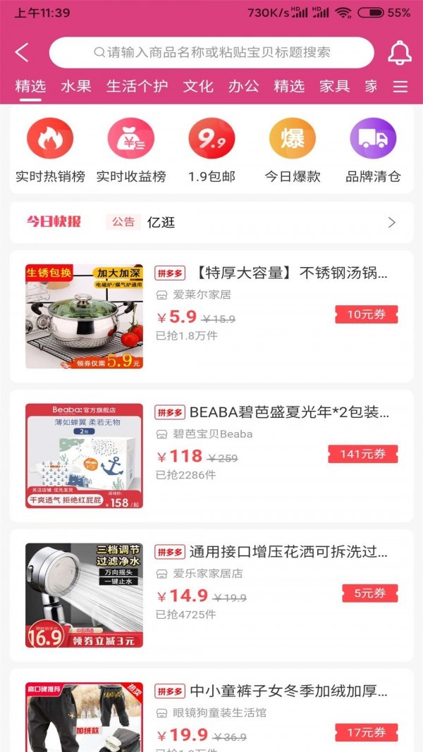 亿逛购物是一款专为消费者打造的智能购物平台,致力于为用户提供高品质、高性价比的商品选择。平台每日更新海量优惠活动,用户可轻松领取专属折扣,享受超值购物体验。无论订单金额大小,亿逛购物均提供全国包邮服务,并承诺闪电发货,确保商品快速送达。平台界面简洁直观,操作便捷,让购物变得更加轻松愉快。无论是日常用品还是潮流新品,亿逛购物都能满足您的需求,快来加入亿逛购物,开启您的智能购物之旅吧!