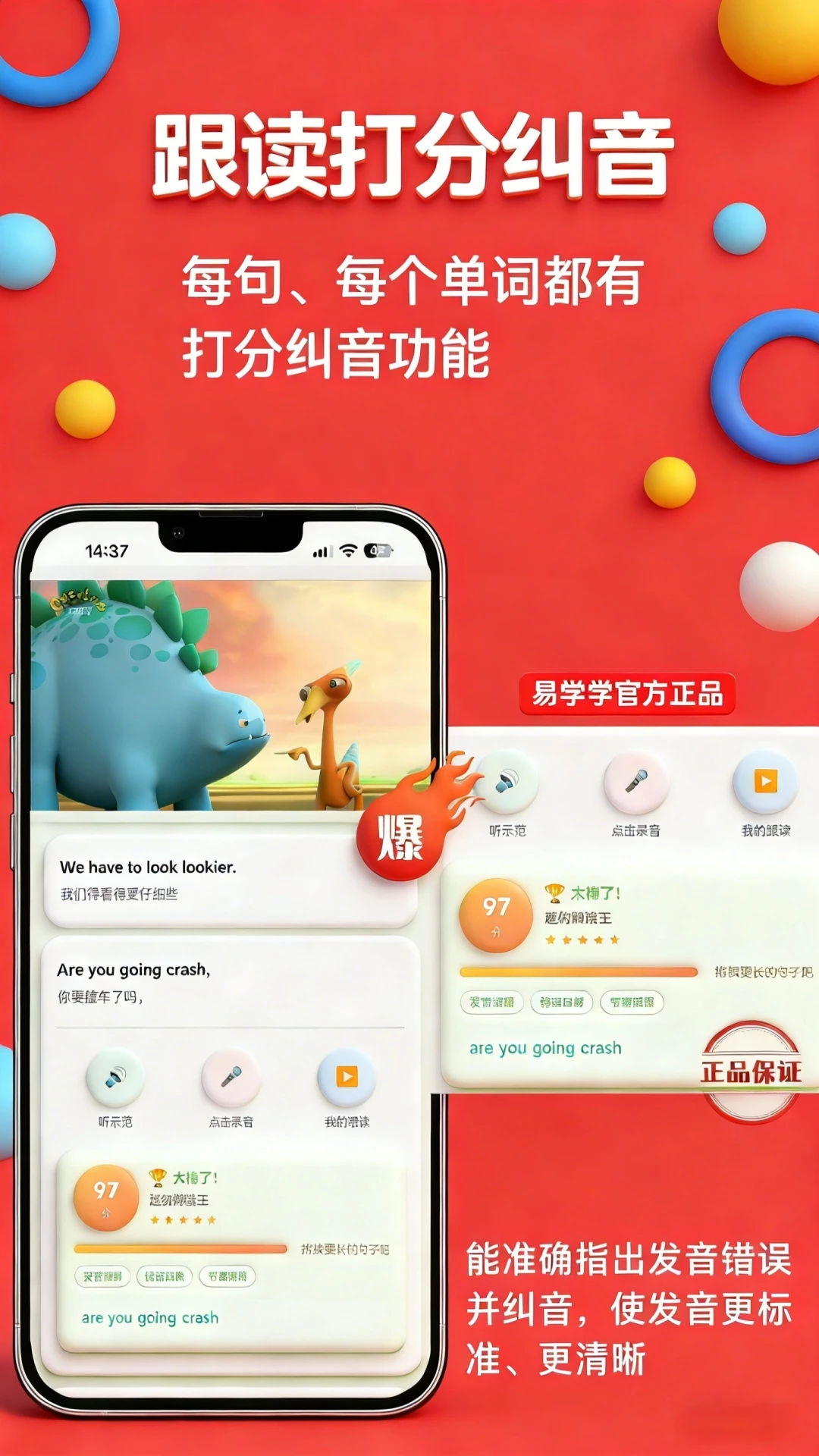 3、智能纠音,学口语、纠发音,定位底层发音弱点,不断提升语言水平;