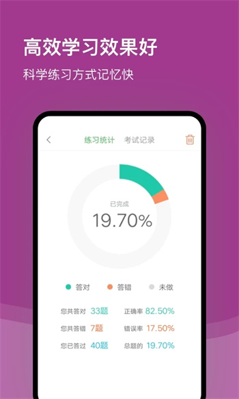 详细的成绩统计功能,在每次练习或考试后查看自己的成绩,同时还能够查看自己的历史成绩记录和分析数据。通过成绩统计功能,全面掌握自己的备考情况,找到自己的薄弱环节,并加以针对性的练习。系统会生成直观的图表展示学习进步曲线,帮助用户清晰了解备考效果。
