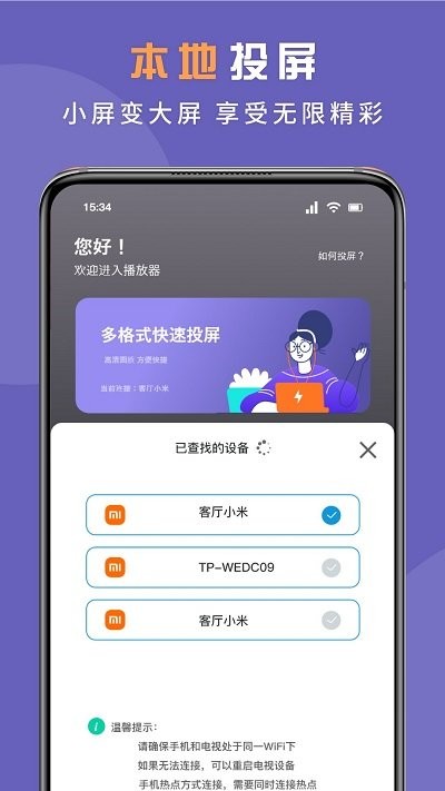 · 多设备管理:支持同时连接多个投屏设备,并可以快速切换投屏目标,满足不同场景下的使用需求