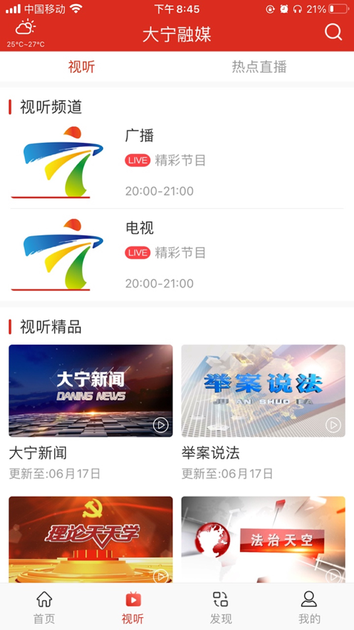 诸多电视节目可以随时播放,轻松看各种精彩的节目信息。平台收录大宁电视台历年精品节目,支持高清画质与离线缓存功能。