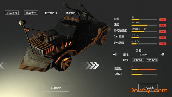 游戏中加入了独特的僵尸模式,玩家可以驾驶战车撞击成群结队的僵尸。撞击速度越快,僵尸就会被撞得越远,这种爽快的打击感让人欲罢不能。