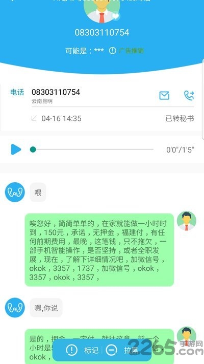 --骚扰拦截功能强大,支持秘书定时接管服务,用户可自由设置通讯录和通话记录的黑白名单,系统还会根据用户反馈不断优化拦截策略;