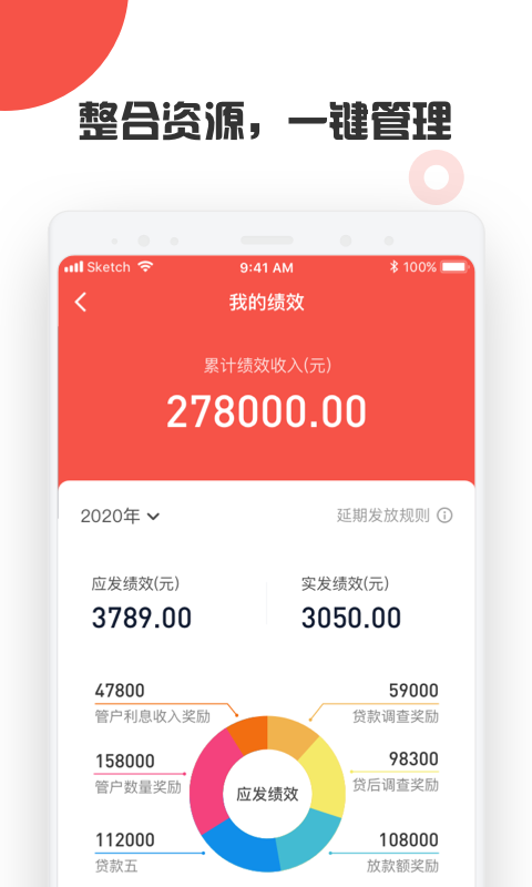业绩整合,同步绩效:自动统计各项业务数据,实时生成业绩报表,帮助客户经理清晰了解工作成果。