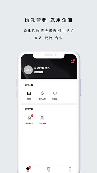企喵是一款专为婚庆行业量身定制的智能营销管理软件,致力于帮助婚庆公司提升运营效率、优化客户管理并实现业绩增长。无论您是小型婚庆工作室还是大型婚庆连锁企业,企喵都能为您提供全方位的数字化解决方案。该软件集营销获客、客户管理、员工协作、数据分析于一体,通过APP、PC端和小程序多平台协同,让您的婚庆业务管理更加高效便捷。