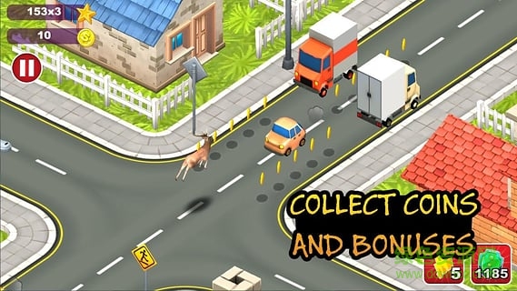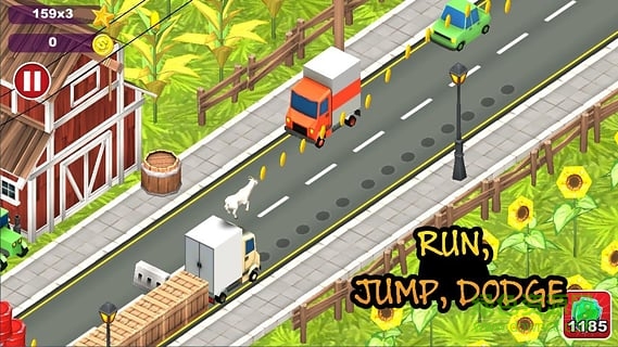 游戏操作简单易上手但极具深度:向左滑动屏幕可使山羊快速左移躲避车辆;向右滑动则实现右向闪避;向下滑动能让山羊立即俯身穿过低矮障碍;向上滑动或点击屏幕则可触发跳跃动作,助你越过各种路障。随着游戏进程,你还能解锁二段跳等高级操作技巧。记住,合理组合这些操作才能在城市丛林中走得更远!