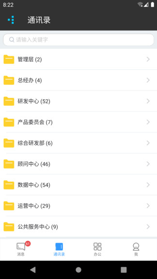 全新设计的通讯录模块,支持智能搜索和组织架构可视化;