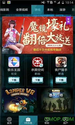 360奇酷魔镜app是一款专为360奇酷魔镜VR设备打造的官方配套应用程序,通过手机与VR设备的完美结合,为用户带来前所未有的沉浸式虚拟现实体验。作为360官方推出的VR软件,它不仅能够充分发挥奇酷魔镜设备的硬件性能,还整合了丰富的内容资源,让您足不出户就能享受震撼的视听盛宴。