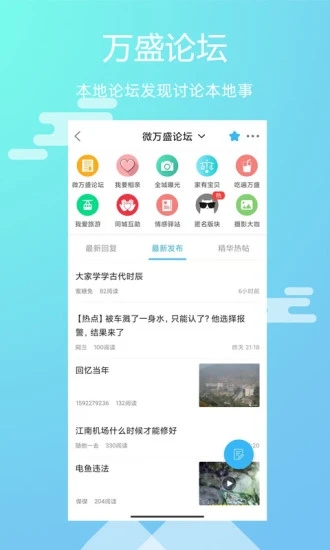 微万盛app是一款专为万盛地区居民打造的综合性生活服务平台,致力于为用户提供便捷高效的数字化生活体验。通过这款应用,您可以轻松获取本地最新资讯、查询公交线路、寻找心仪房源、发现周边美食,还能参与丰富多彩的同城活动。无论是求职招聘还是社交互动,微万盛都能满足您的多样化需求。经过两年精心打磨,这款应用已经成为连接万盛市民与城市服务的重要桥梁,让科技真正服务于生活,让您足不出户就能享受高品质的城市生活服务。