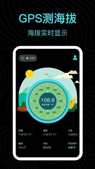 完成初始设置后,您就可以开始使用各项功能了。主界面会实时显示您当前的海拔高度、经纬度坐标和气压数据,这些信息对于户外探险者来说非常实用。当您需要确定方向时,内置的高精度指南针可以帮助您快速找到正确方位。