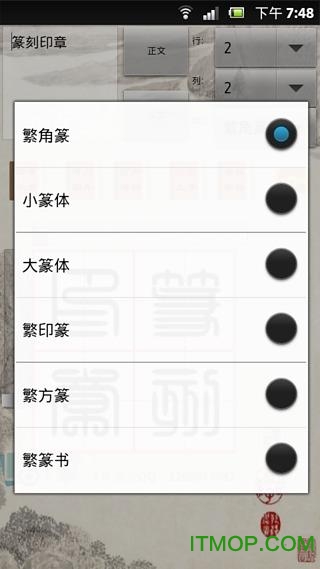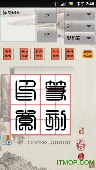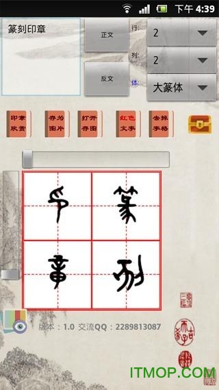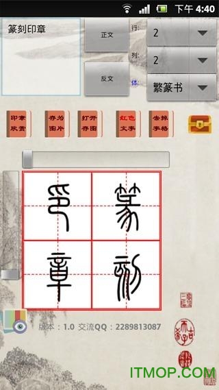 注:点击手机的菜单键,还可以设置字格形式和大小,调整印章细节