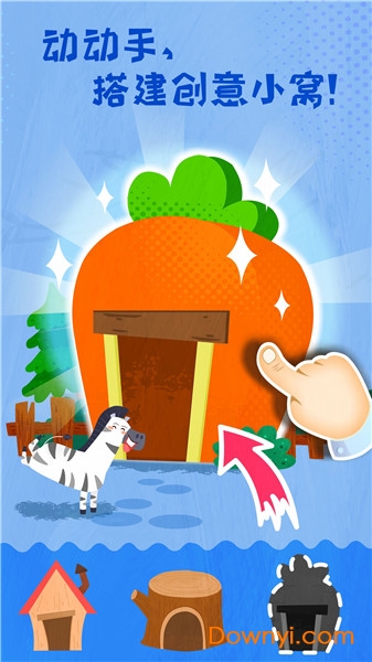 帮动物们设计宿舍啦。打扫、清洗、铺干草,挑选喷泉、树木进行装饰,豪华小窝就"装修"好啦。接下来,为小动物们分配宿舍。这个环节培养孩子的空间想象力和审美能力。