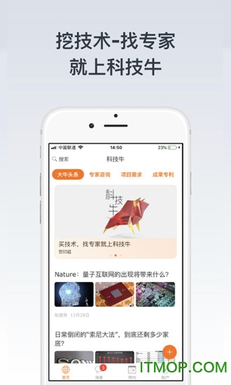 科技牛app作为技术领域的专业平台,专注于为用户提供技术需求解决方案,同时为行业专家搭建成果转移转化的高效通道。在这里,您可以挖掘顶尖技术资源,咨询领域专家,寻找优质人才,一站式满足您在科技领域的各种需求。平台采用智能匹配算法,确保每位用户都能快速找到最适合自己的项目或人才,大幅提升合作效率。