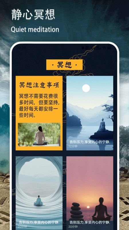 精心冥想专区收录了数十种专业冥想音频,包括自然白噪音、引导式冥想、正念练习等,适合不同场景下的放松需求。所有音频均由专业音疗师录制,帮助用户快速进入放松状态。