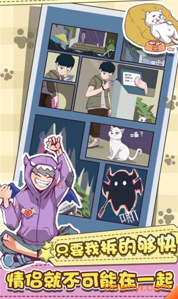 游戏的整体画风采用了清新可爱的卡通风格,色彩明亮,人物造型Q萌,给玩家带来轻松愉悦的视觉体验。在游戏中,玩家需要充分发挥自己的想象力,运用各种创意方法来完成拆散情侣的任务。每对情侣都有不同的性格特点和相处模式,你需要仔细观察,找出他们关系中的关键问题,才能成功让他们分手。游戏还设置了多种有趣的互动元素和隐藏彩蛋,等待玩家去发掘。