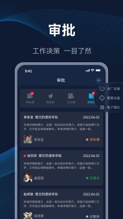 将工作当中的一些需要审批的事项,直接可以通过线上提交申请。系统支持多种文件格式上传,审批流程可自定义设置,满足不同企业的个性化需求,让繁琐的审批工作变得简单高效。