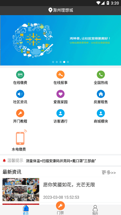 鸿坤荟app拥有丰富实用的功能模块:智慧门禁系统支持多种开门方式,包括手机远程控制;全国统一服务热线随时待命;内置商城模块方便业主购买日常用品;访客通行功能可生成电子通行证;水电燃气等生活费用一键缴纳;社区资讯板块及时推送重要通知;"爱我家园"功能鼓励业主参与社区共建;在线报事系统简化问题反馈流程;详细的开锁教程帮助新用户快速适应;物业费、车位费等各类费用在线支付;房屋租售信息平台为业主提供房产交易便利。