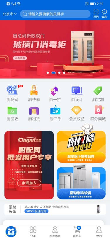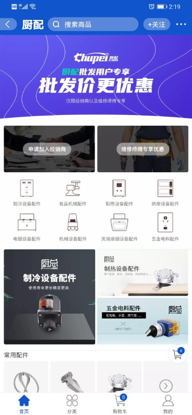 *厨配:建立全国最大的商厨配件数据库,10万+SKU库存保障,所有配件均提供原厂质保,价格比市场均价低15%-30%;