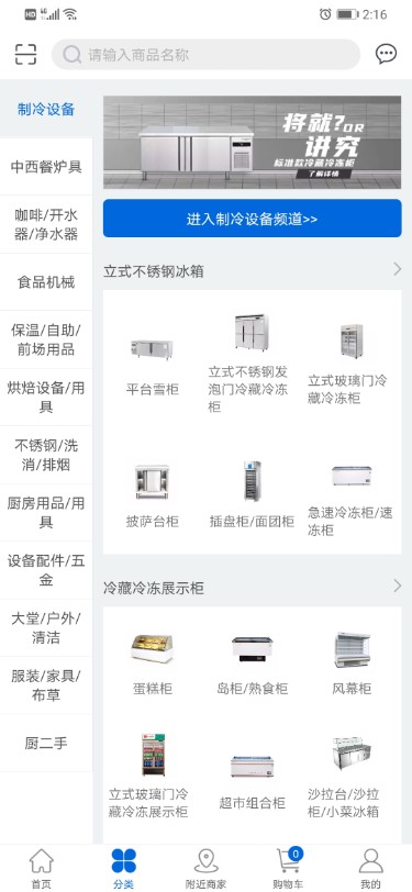平台商品库包含八大核心品类:商用制冷设备系列、专业中西餐炉具系列、饮品设备系列(含咖啡机、开水器、净水器等)、食品加工机械系列、酒店用品系列、商厨设备配件系列、机电设备系列以及智能厨房系统。目前平台已上线超过5000种经过严格质检的商品,每月还会新增200余款最新产品。