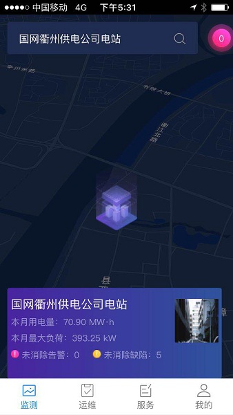 在监测中心页面,用户可通过地图定位或搜索功能快速查找目标电站,查看实时运行数据;